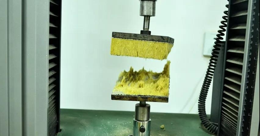 巖棉復(fù)合板以豎絲巖棉條為保溫芯材,改變了傳統(tǒng)巖棉板的纖維分布方向和運動方向,使傳統(tǒng)巖棉板/條垂直于板面方向的抗拉強度由≥10kPa/80kPa提高至≥100kPa,整體產(chǎn)品穩(wěn)定性較高,不易開裂。