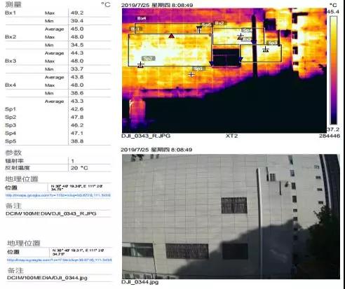 某地區(qū)中級人民法院外墻無機(jī)保溫砂漿保溫層出現(xiàn)脫落、滲漏現(xiàn)象,經(jīng)過勘查檢測(檢測設(shè)備為無人機(jī)搭載紅外熱成像雙光攝像頭),判斷整體外墻目前存在的各類缺陷及其嚴(yán)重程度,從而尋找合理、有效的解決方案,解決外墻問題,消除外墻帶來的安全隱患。