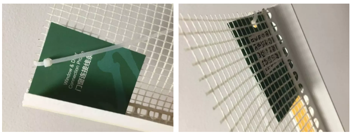 由特定形狀的PVC新型塑材,配以玻纖網(wǎng)縫制成一體的網(wǎng)格護角材料;防止角部開裂、提高抗沖擊性能、保證墻角垂直的同時降低施工難度、提高施工效率。