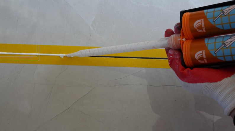 施工前去除前段20cm:擠壓去除前段20cm的出料,使靚縫劑AB組分充分混合均勻,以防攪拌不均難以固化。