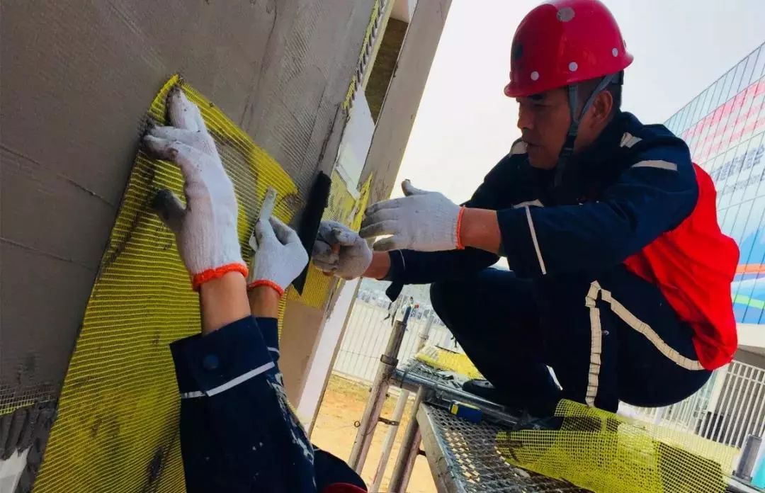 4.玻纖網(wǎng):耐堿涂塑玻璃纖維網(wǎng)格布。為使抹面層有良好的耐沖擊性及抗裂性,在薄抹面層中要求滿鋪玻纖網(wǎng)。
