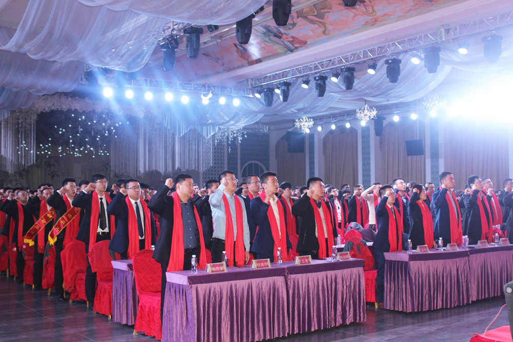 全體與會(huì)人員向《東方雨虹基本法》宣誓。