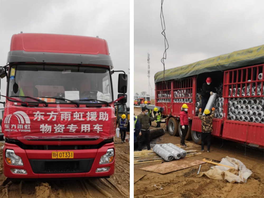 當(dāng)前,湖北地區(qū)物流壓力頗大。但他們?nèi)悦坝暄┨斐霭l(fā),經(jīng)連夜趕路,將東方雨虹馳援物資安全送入武漢雷神山醫(yī)院施工現(xiàn)場(chǎng)。到達(dá)后,更是抓緊一切時(shí)間,立刻組織卸貨、安排施工,爭分奪秒,一絲不茍,最終保質(zhì)保量完成施工任務(wù)。
