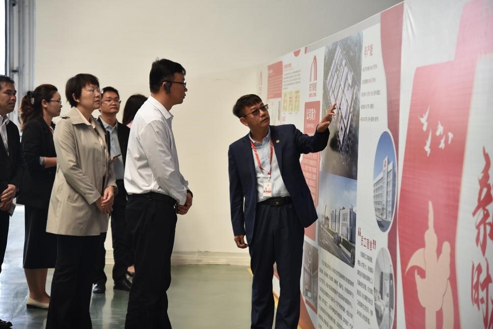 調(diào)研組一行先后前往高分子卷材車間、水性涂料及砂漿車間,實(shí)地考察廣州東方雨虹生產(chǎn)研發(fā)物流基地建設(shè)現(xiàn)狀及生產(chǎn)經(jīng)營(yíng)情況。期間,東方雨虹制造集團(tuán)生產(chǎn)運(yùn)營(yíng)副總監(jiān)兼廣州東方雨虹總經(jīng)理胡國(guó)雄就廣州東方雨虹產(chǎn)品種類、產(chǎn)品性能、生產(chǎn)過(guò)程等情況作詳細(xì)介紹。