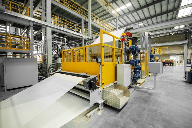 東方雨虹TPO生產(chǎn)線引進自國際知名化工機械設(shè)備制造商克勞斯瑪菲貝爾斯托夫公司,工藝先進、精準連續(xù)、均勻穩(wěn)定、綠色節(jié)能、高效安全。