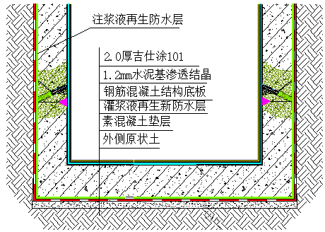 地下室室內(nèi)注漿滲漏維修示意圖如下: