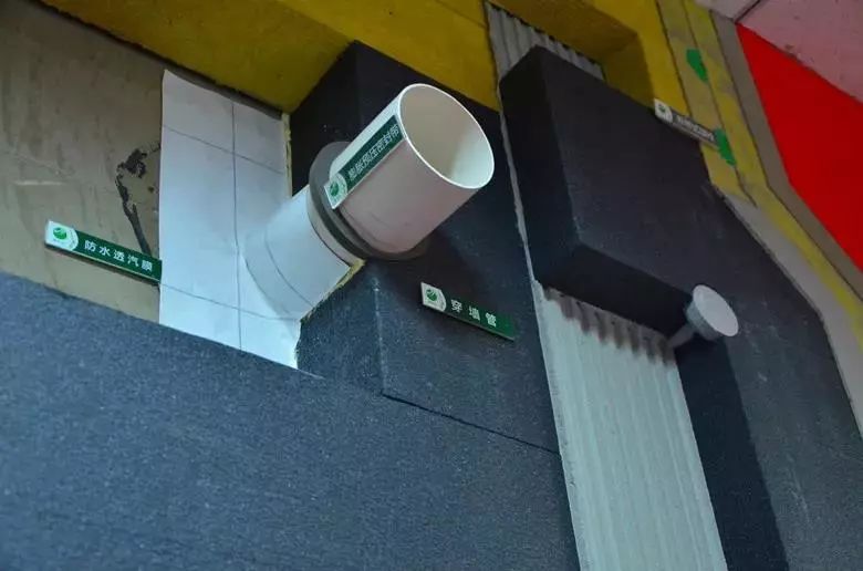 氣密性處理:門窗洞口、穿墻管道內(nèi)側(cè)應(yīng)粘貼防水隔汽膜,外側(cè)應(yīng)粘貼防水透汽膜。保證室內(nèi)水汽不能進(jìn)入保溫系統(tǒng)的同時(shí),還能使得保溫系統(tǒng)內(nèi)一旦聚積水汽可以及時(shí)排出。