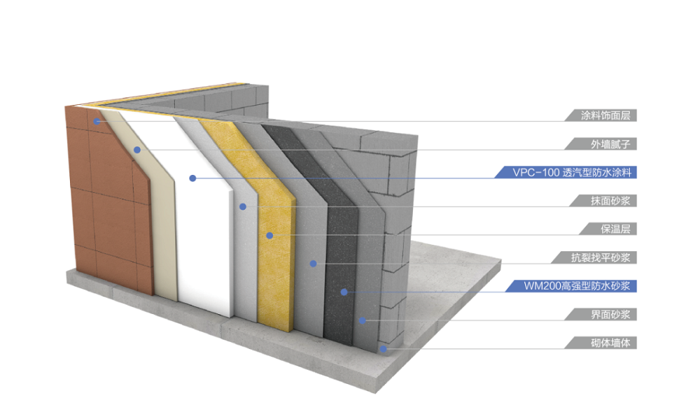 VPC-100透汽型柔性防水涂料防水透汽,國(guó)內(nèi)首款滿足新規(guī),系統(tǒng)完善專為外墻,持久守護(hù)