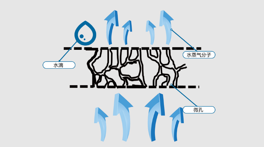 VPC-100透汽型柔性防水涂料區(qū)別于其他防水涂料的最大特點(diǎn)是防水透汽。產(chǎn)品涂刷到外墻后,形成可透水蒸氣的介觀微孔結(jié)構(gòu)和可防液態(tài)水的宏觀大面連續(xù)相,實(shí)現(xiàn)防水透汽效果。